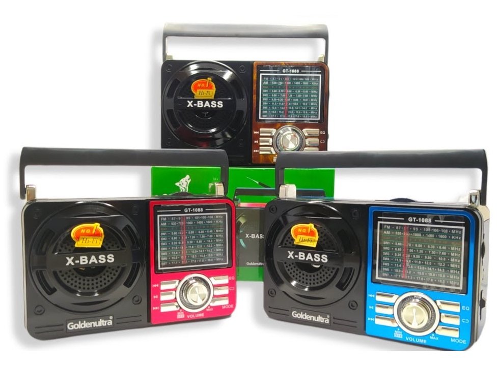 Rádio Portátil Retrô Goldenultra GT-1088S – AM/FM/SW com Lanterna LED e Recarregável